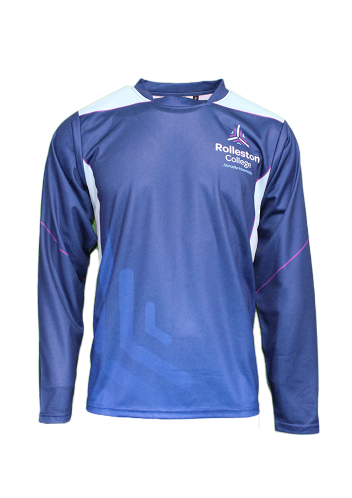 Rolleston College Boys LS PE Tee Navy/Teal/Magenta